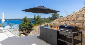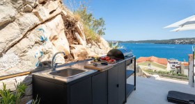 Retreat to the Villa Adriatic View II and relax in the cozy lounge at the pool terrace while the water shimmers in front of you. On the side terrace, there is a bbq facility where you can prepare fresh meat, fish, and vegetables and deliver it to the dining table so the whole family can enjoy. Pair it with a glass of authentic local wine crljenak, the ancestor of the world-famous zinfandel sort.