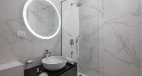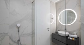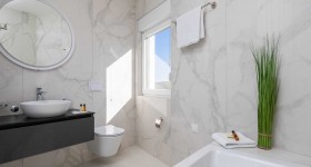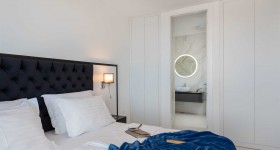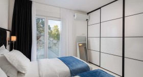 Three of the bedrooms are situated on the first floor and all of them are soundproofed, air-conditioned with wardrobe and cloth rack. One of them has an exit to a private balcony that is ideal for spending hot summer afternoons with a good book.